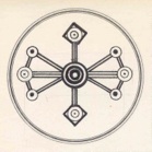 I eventually began designing mandalas of my own. On the left is a seven inch watercolor I painted in 1972. The sun gear and bicycle wheel are prints of wood blocks I carved in 1973. The logo I designed using my initials symbolized my arrival at my intended destination. Though I had not achieved enlightenment I had gained insight and a sense of wholeness. The activity of delving into the mandala was a centering experience. Like the Buddhist monks who create mandalas with colored sand only to sweep the masterpiece away afterwards, I learned it is the process and not the product that is the prize.